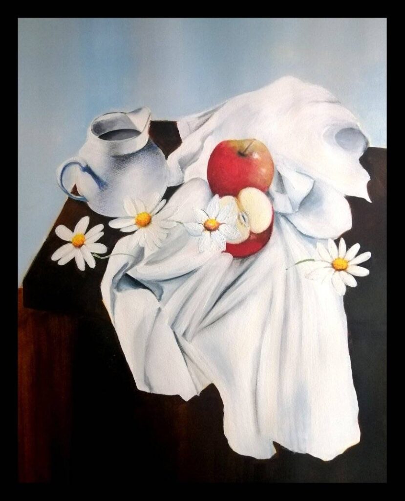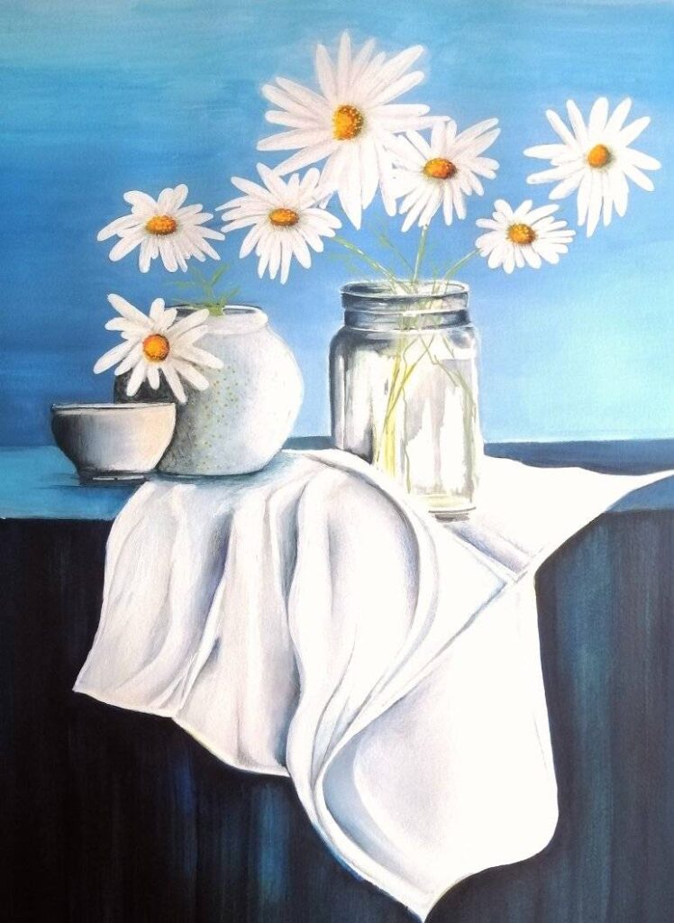 watercolours 'A Blooming Moment' Watercolour / Acrylic on Watercolour Paper... 'Daisy-Daisy' .... Acrylic.. Watercolour.. on watercolour paper. 'An Apple A Day'....Keeps the Daisies at Bay... Watercolour - Pencils - Acrylic, on Watercolour Paper. Away from it all On Reflection 'Sunset at Fanad Head' Watercolour /Soft Pastels